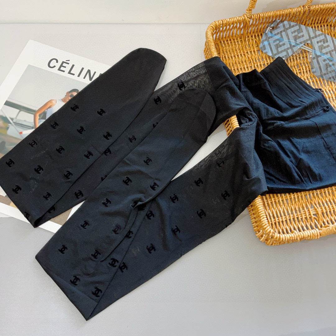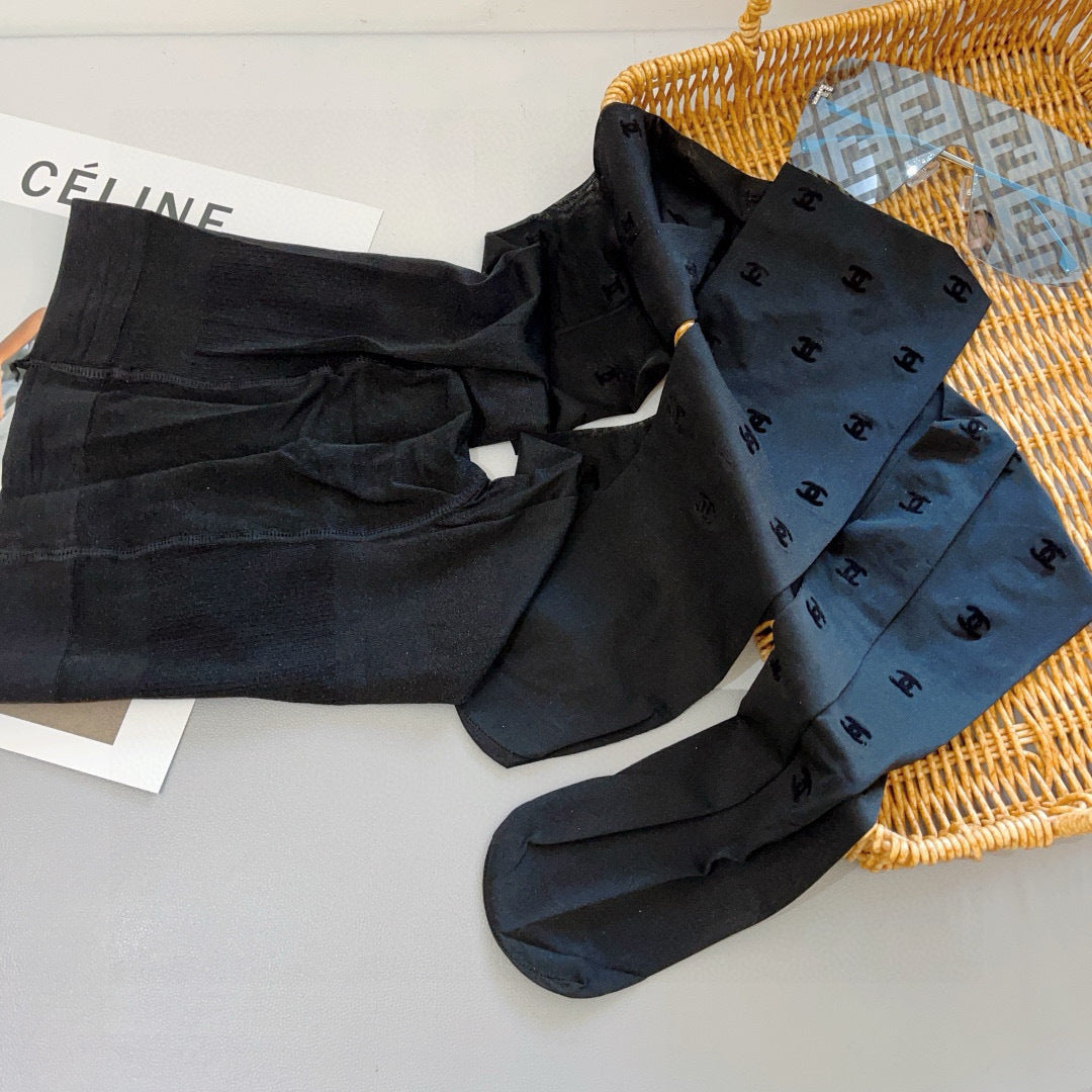 Chan classic flocked monogram stockings