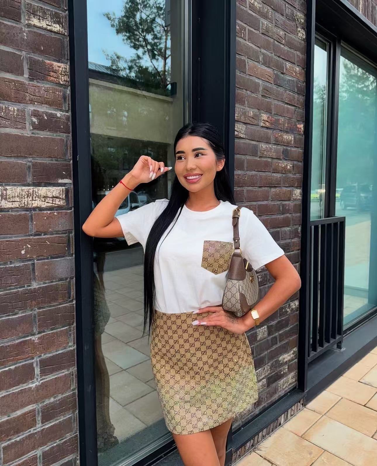 Guc NEW jacquard rhinestones skirt