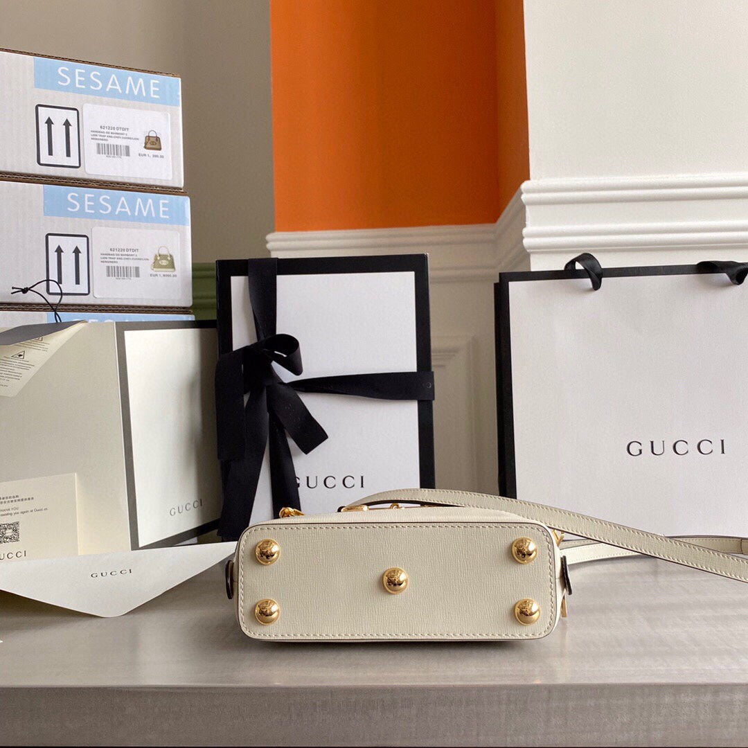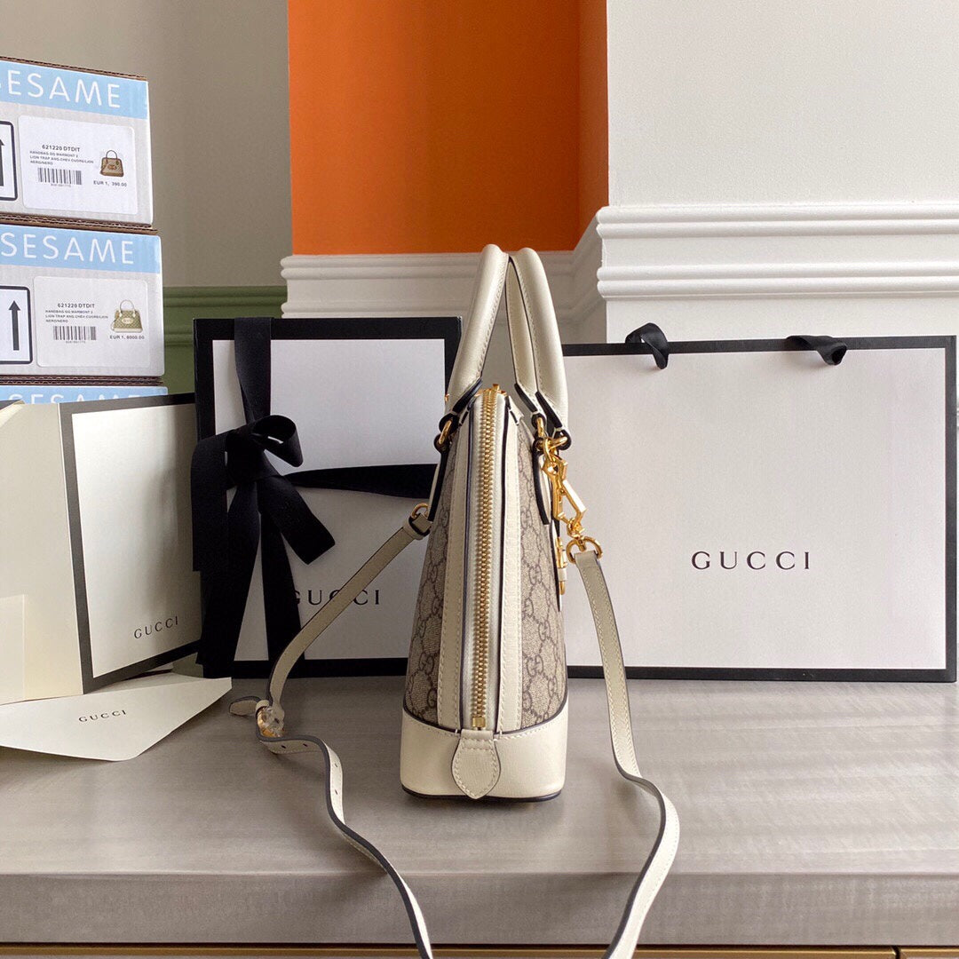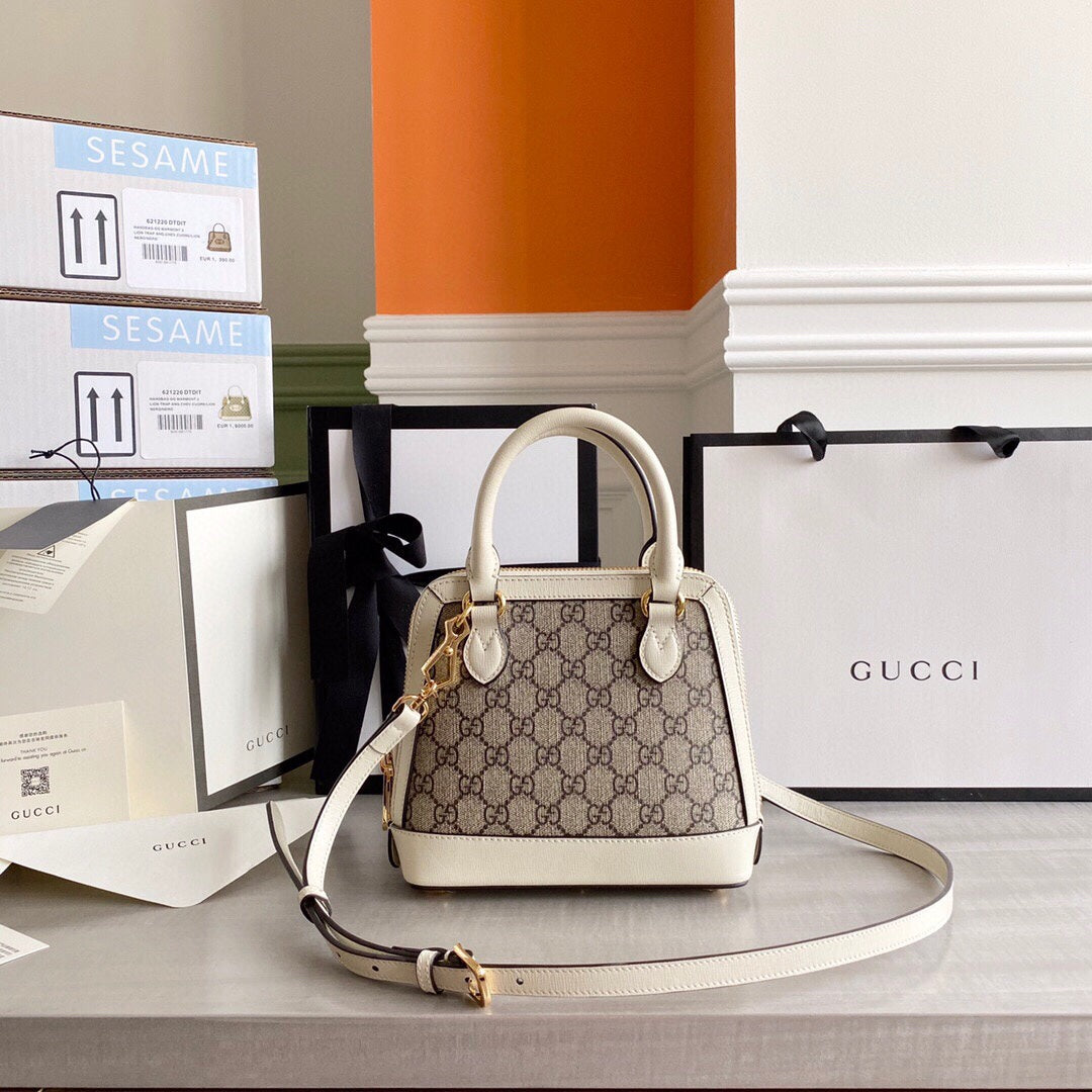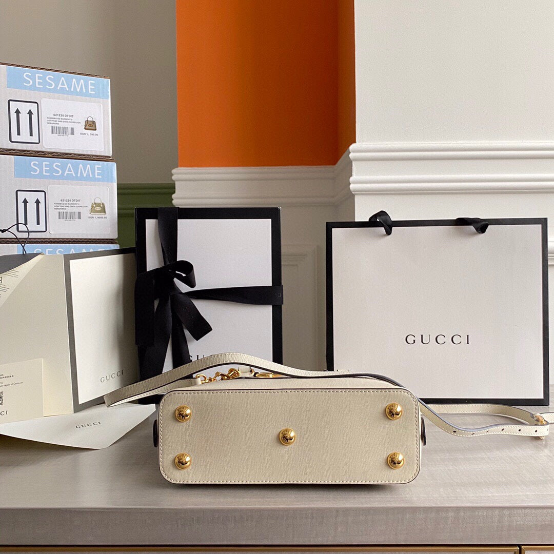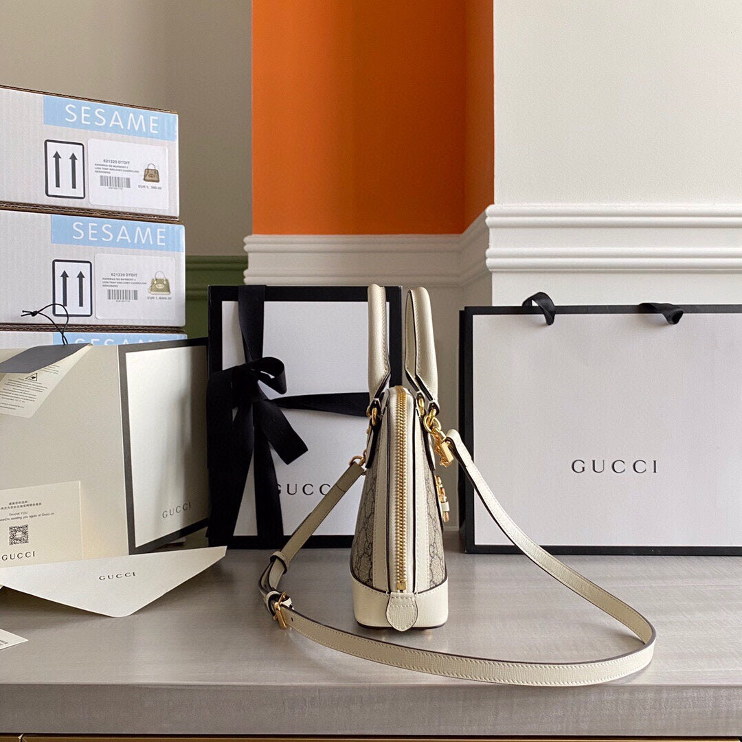GC Horsebit 1955 small top handle bag Beige/White
