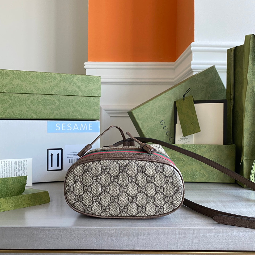 GC Ophidia small bucket bag Beige/ebony GG Supreme canvas