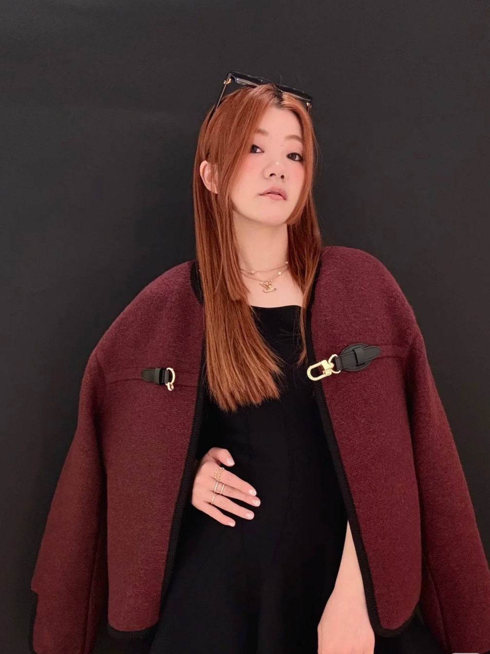 Louis New Leather buttoned cape coat